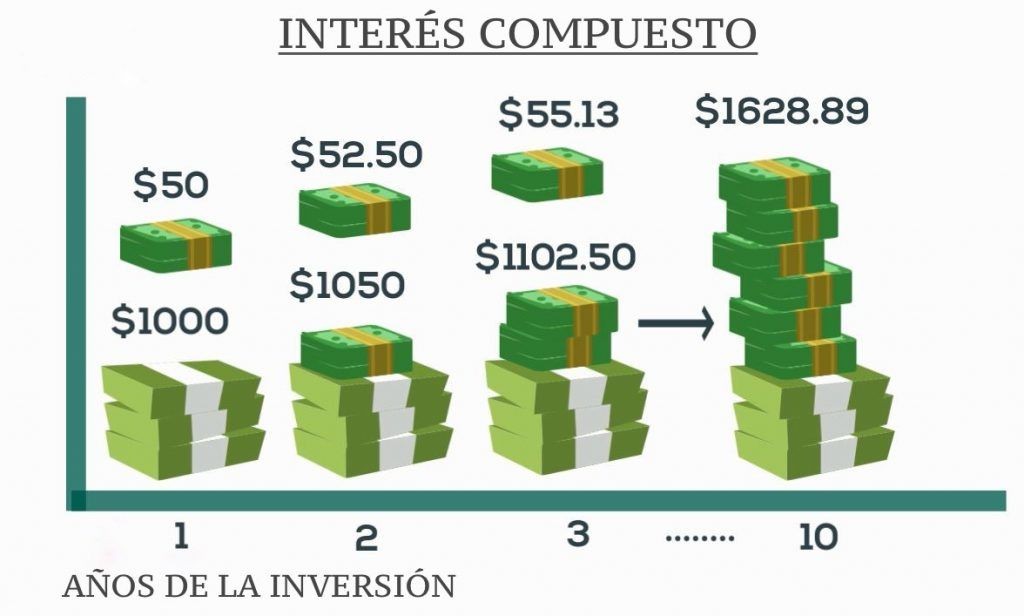 Para entenderlo de manera práctica, imagina que inviertes $1,000 con un interés del 5% anual. Al final del primer año, tienes $1,050. Si dejas ese dinero en la inversión, al segundo año ganarás intereses sobre los $1,050 y no solo sobre los $1,000 iniciales, y así sucesivamente. Con el tiempo, este efecto compuesto crece de manera exponencial, convirtiéndose en una de las formas más efectivas de aumentar tu capital sin necesidad de aportar grandes cantidades adicionales.